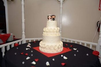 Patty’s Cakes made a beautiful cake for our wedding. They made the entire process easy for us. The staff was friendly and professional. We definitely recommend them to all our friends. We chose a lemon cake with raspberry cheese cream filling and whipped cream on the outside. The cake was placed outside in a shade at 9 am and cut at 2pm. Even though it was 85 degrees outside the whipped cream and the cake maintained its integrity. Everyone loved the cake and talked about how good it was after the event! Thanks you for a beautiful and tasty cake! – Natalia and Adam