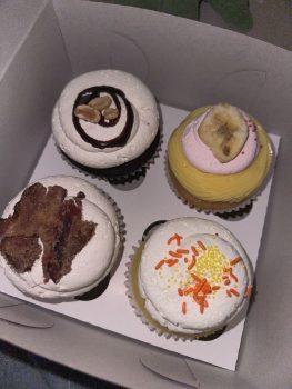 The lady who helped me gave me a pamphlet with a guide to all of their flavors so we would know what we were eating, which proved to be super helpful, as I couldn’t remember what I ordered! We have had 5 of the cupcakes so far, and they have all been wonderful. The cake is moist, has great flavor, and the toppings are all delicious. Also, they are beautiful to look at!