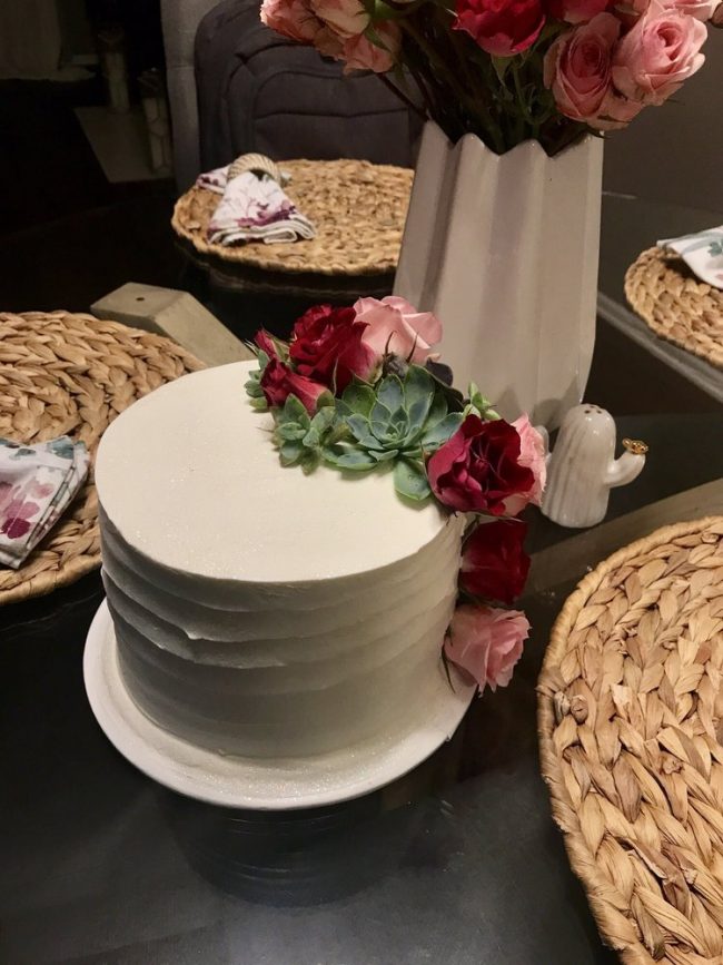 The cake was simple and elegant and we easily personalized it with flowers and our topper. It looked stunning and tasted amazing! Thank you, Patty’s, for our perfect cake!