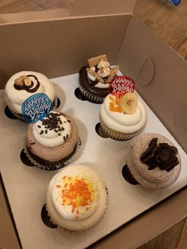 Yum! Was yelping around the Fullerton area to try and find a bakery that was open past 5/6pm so I could pickup some cupcakes after work. Thank you Patty’s! They have a ton of flavors available and I was able to place an online order for same day pickup. I got: banana mango, strawberry with strawberry Oreo mousse, lemon guava, chocolate with Nutella, s’mores and chocolate with peanut butter mousse and added a happy birthday box as well. My favorite flavors were the banana mango (SO good!) and the strawberry with Oreo mousse. All the cupcakes were super light and fluffy and I loved how they all had a filling inside as well! Not overly sweet (like Sprinkles) and fluffy frosting as well. Really cute store, easy parking on the side street and I was in and out in less than 10 minutes. Cupcakes are very fairly priced for the flavors and fillings you get – I would definitely come back and order more but would probably skip the celebratory box next time since their regular box looks cute too.