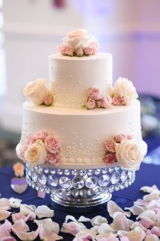 So for our small family wedding, we decided on the White Cake with the Vanilla Bavarian Custard and Raspberry Filling for the large tier and for the top tier we chose the Chocolate Cake with the Chocolate Chip Mousse Filling. Guess what? There was hardly any cake leftover. All our guests said our wedding cake was the best they have ever had.